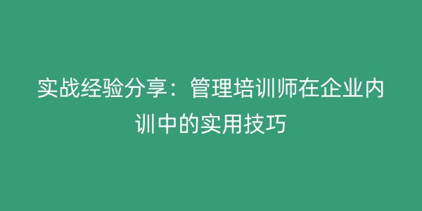 作为企业内部培训师,掌握一些实用的培训技巧是非常重要的。通过了解企业需求、采用多样化的培训方式、注重实践操作以及评估和反馈等方面,可以提高培训的效果,为企业的发展做出贡献。